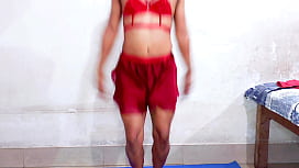 Travesti sexy hace ejercicio y muestra su pequeño clítoris y juega con un consolador blanco 10 min