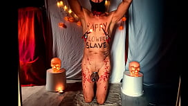 Esclava blanca patética y desnuda como juguete sexual en una fiesta de Halloween, CMNM 4 min