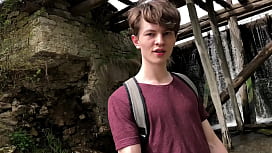 Trozo caliente pajeando su gran polla (23 cm) en un lugar público cerca de la presa / mujer joven Chico 6 min