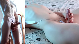 Chica en micro bikini se folla una polla grande y se corre 8 min