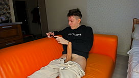 Se muestra a un joven tímido eyaculando sobre el pecho. 62 seg