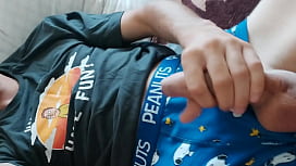 Hijastro cachondo se acaricia su gran polla cuando papá no está en casa 10 min