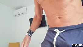 Un papi guapo y suave acaricia su enorme miembro. 4 min
