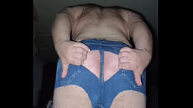¡Oso ruso caliente se masturba en pantalones cortos de mezclilla y medias negras! 4 min