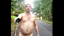 Nudista exhibicionista camina desnudo en bosques y en la vía pública, campo abierto 9 min