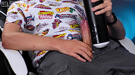 Un tipo cachondo usa un juguete sexual automático que le da a su gran pene erecto un orgasmo potente que hace que su miembro palpite. 10 min