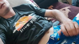 Hijastro cachondo se acaricia su gran polla cuando papá no está en casa 10 min
