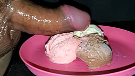 Un poco de diversión jugando con mi helado y cargándolo de postre con esperma. 2 min